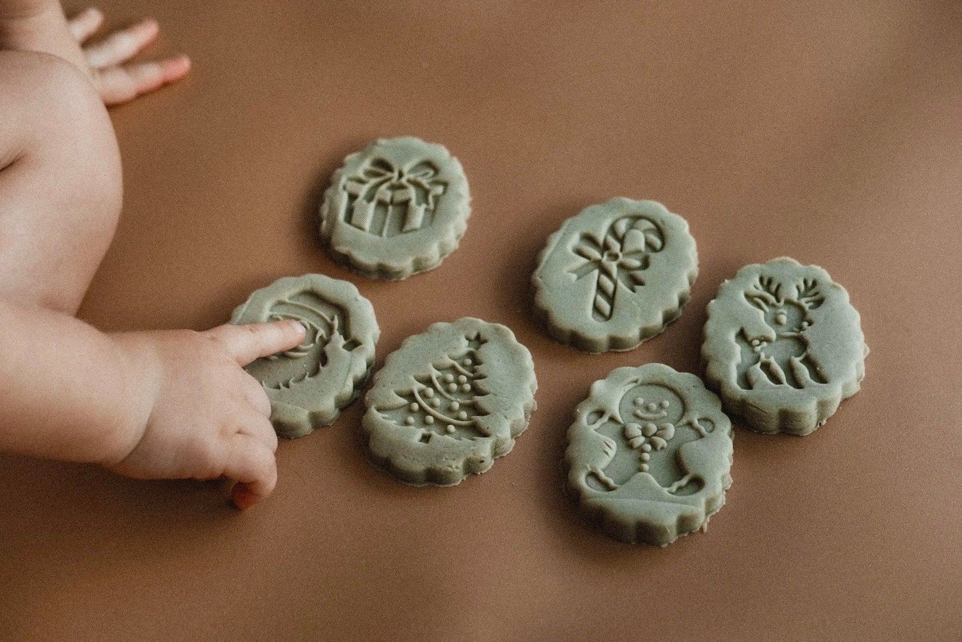Our Christmas Eco Stamp Set brings festive fun to sensory play with six classic designs β Santa, reindeer, Christmas tree, present, gingerbread man, and candy cane. They support fine motor development, open-ended play, and imaginative Christmas-themed activities.