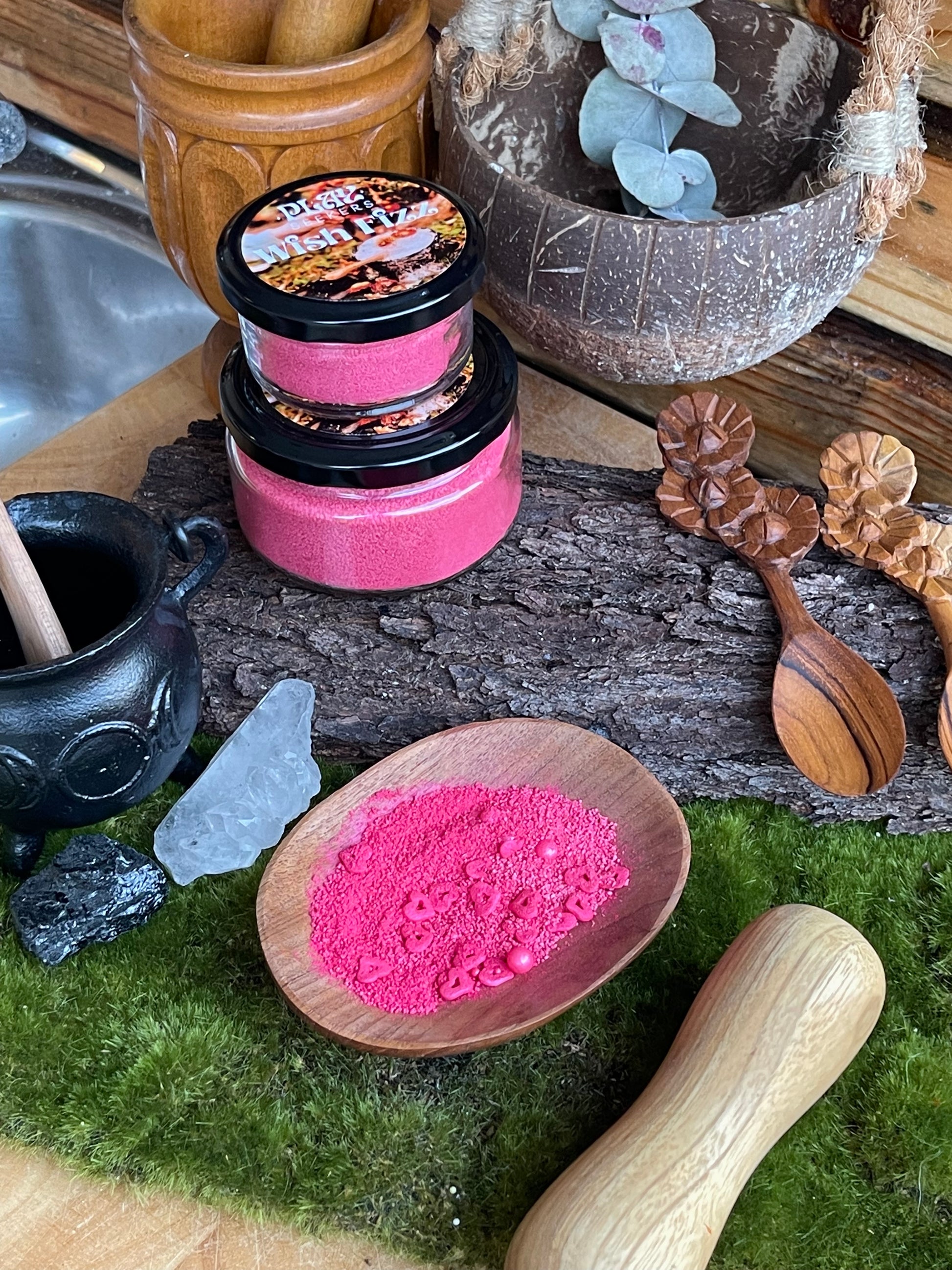 Wish Fizz play inspiration: Children will have a blast pretending they are scientist, fairies, wizard or anything they wish to be! Fizz are a great addition to mud kitchens, water play trays, potion making, science experiments, creating soups or exploring reactions. Create potions to entice fairies and magical creatures to come live within your backyard. Perhaps sprinkle a pinch of Eco glitter, Dried Flowers and crystals to your window frames to help with extra sweet dreams! (we have been told that it also helps the tooth fairy and Santa's elves find your bedrooms easier!