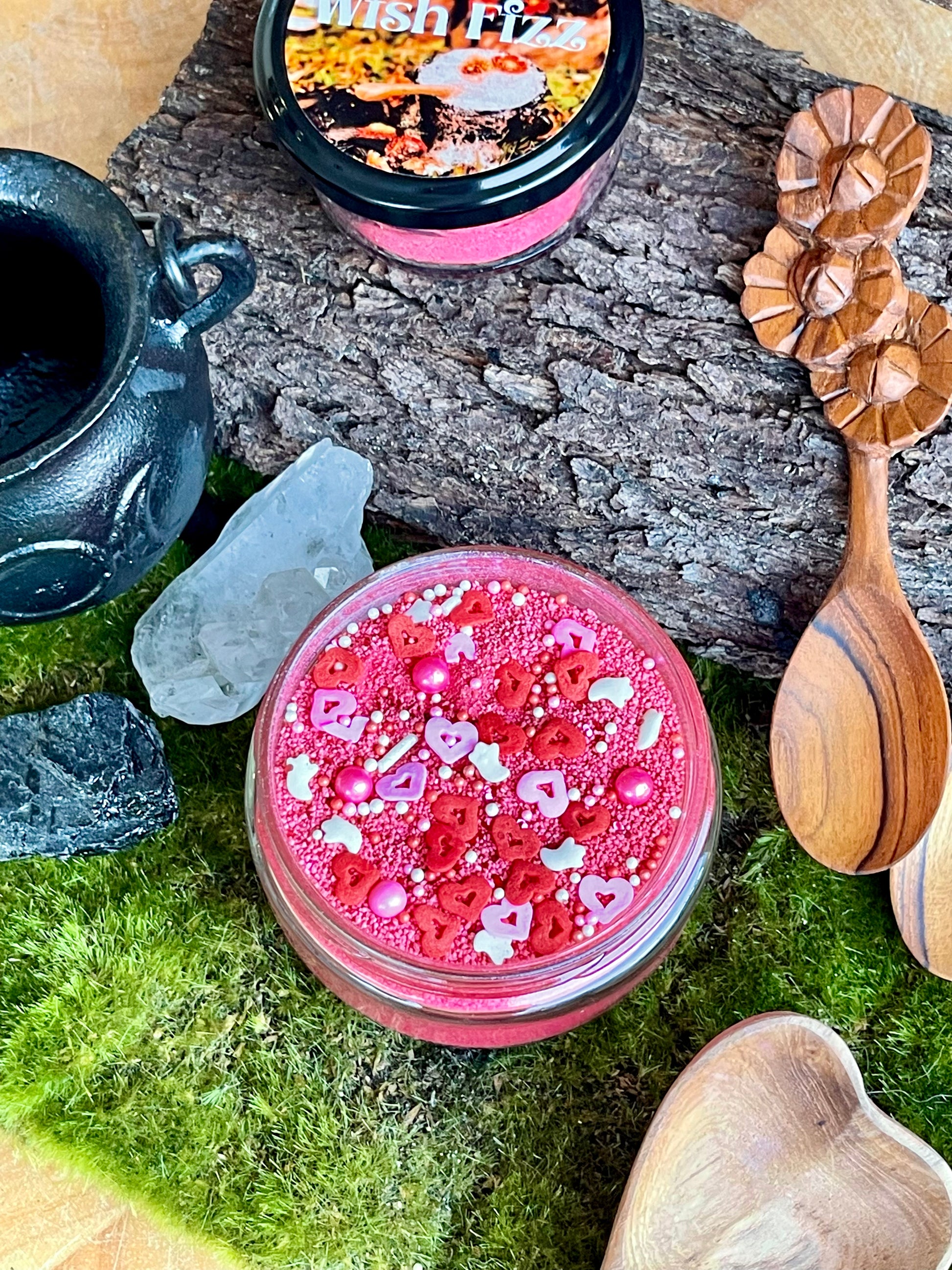 Seasonal Fizz mixes may include: vegetable powder dyes, bio glitter and dried blooms.