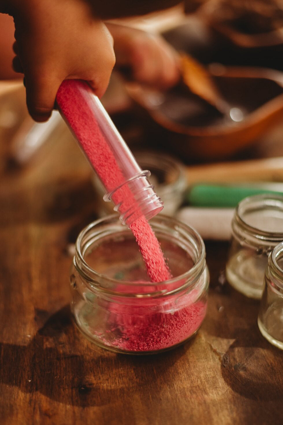 Materials: Our Play Seekers Fizz are lovingly handmade using Bio Glitter, Bicarbonate soda, food based colouring, earth pigments, salt, citric acid.