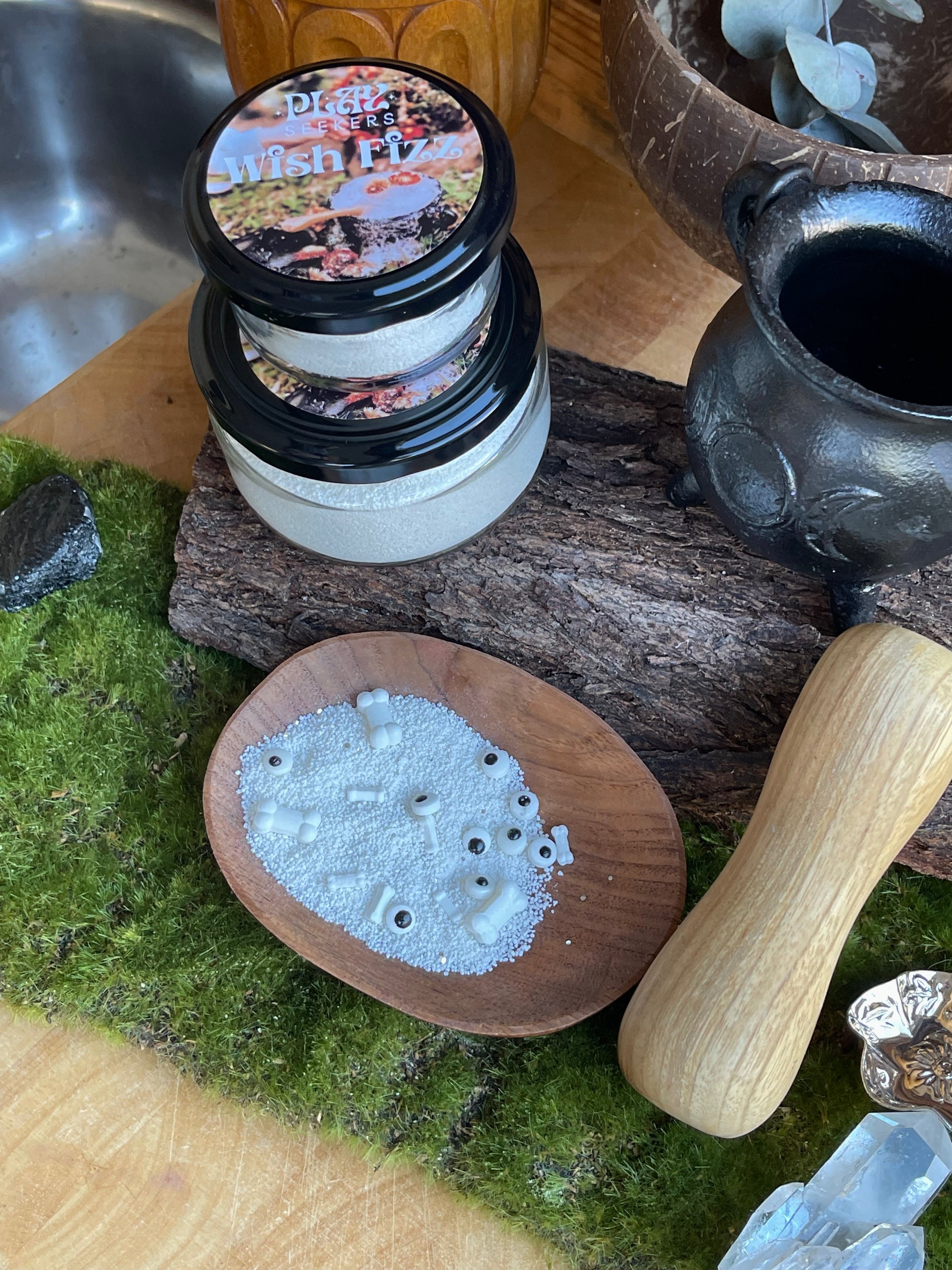 Wish Fizz play inspiration: Children will have a blast pretending they are scientist, fairies, wizard or anything they wish to be! Fizz are a great addition to mud kitchens, water play trays, potion making, science experiments, creating soups or exploring reactions. Create potions to entice fairies and magical creatures to come live within your backyard. Perhaps sprinkle a pinch of Eco glitter, Dried Flowers and crystals to your window frames to help with extra sweet dreams! (we have been told that it also helps the tooth fairy and Santa's elves find your bedrooms easier!