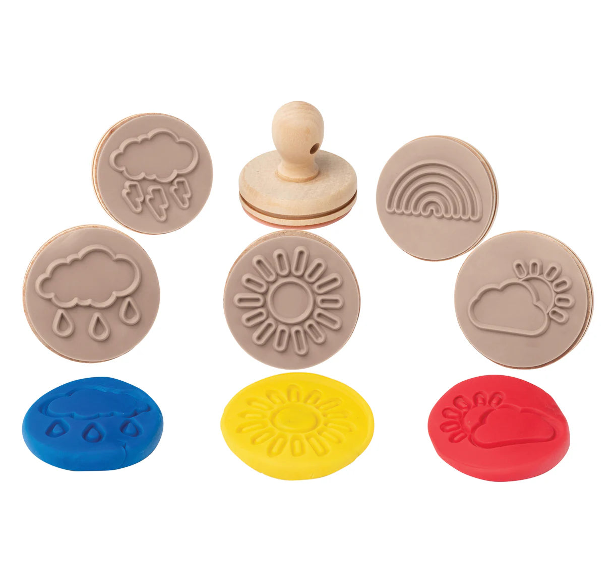 This set features six weather symbols including a rainbow, snowflake, cloud, sun, raindrop and storm cloud. Children can engage in sensory play while also learning about different types of weather.